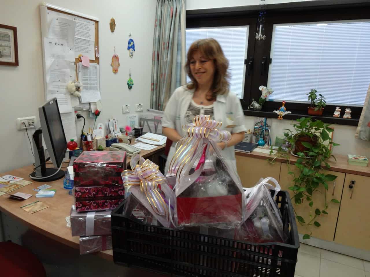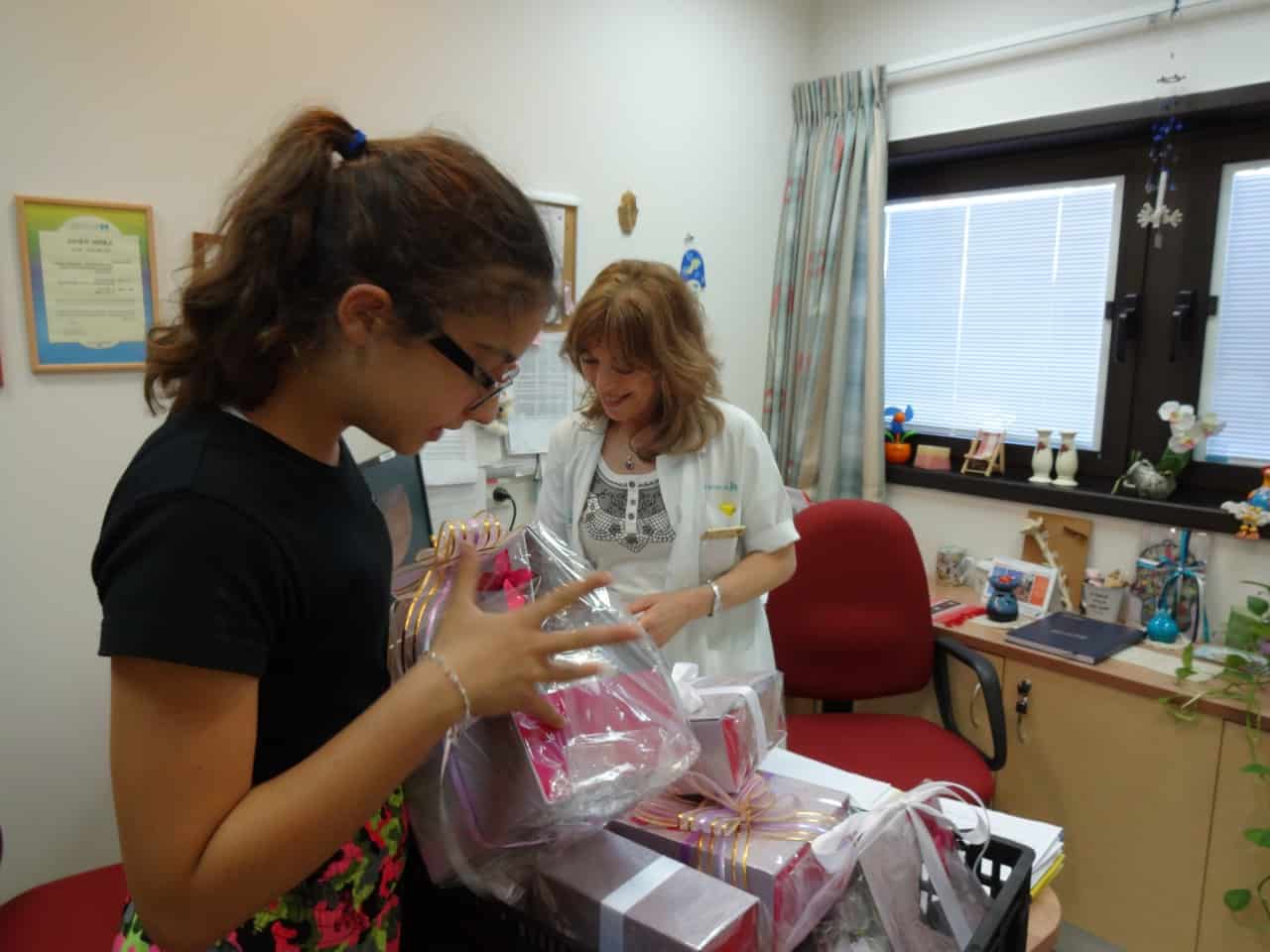 Jennie heard about the Lemonade Fund (www.lemonadefund.org) and decided that she wanted Lemonade Fund grant recipients, or any other woman newly diagnosed with breast cancer, to receive her gift baskets. Together with her mother and sister, she met with Dr. Amalia Magen, Dr. Tzvi Koyfman, and others from the staff at the Meir Hospital Breast Center. In addition to learning a bit about the current state of breast cancer diagnosis and treatment, she delighted the staff with her personality and her beautiful gifts. She will surely brighten the days of those women coming in for dreary doctors appointments. How dark and fearful those early days can be! How lovely to leave with a surprise gift that shows such care and thoughtfulness. I understand from her Mom that Jennie also decided to donate a portion of her Bat Mitzvah gift money to the Lemonade Fund.