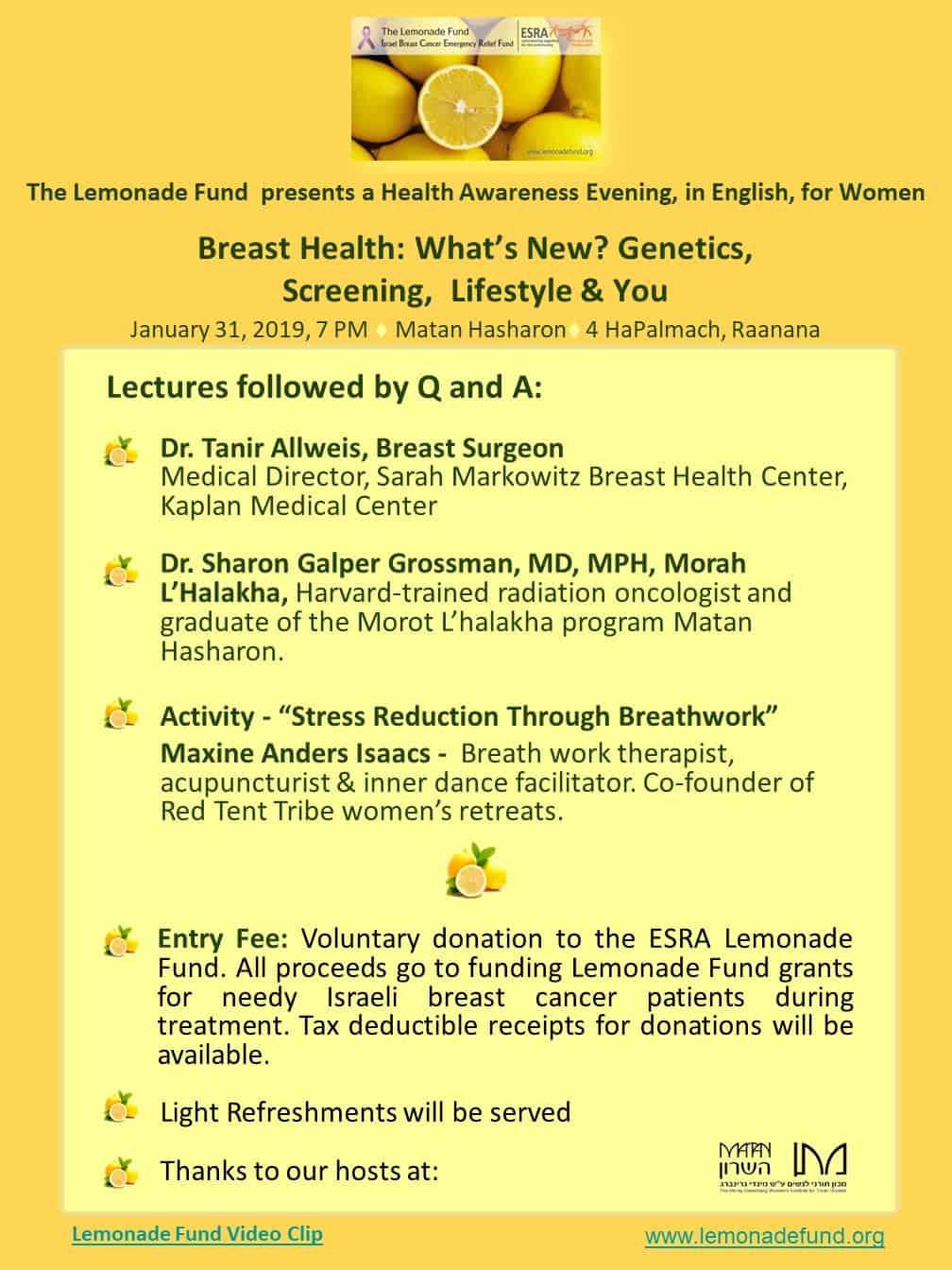 Women's Health Awareness Evening: Breast Health 31/1/2019 Raanana